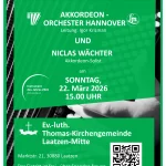Schon mal zum Vormerken: Das jährliche Herbstkonzert des Akkordeon-Orchester Hannover findet am Sonntag, 30. November 2025, 15 Uhr, wieder im Fritz-Haake-Saal im Stadtteilzentrum Hannover-Ricklingen statt.